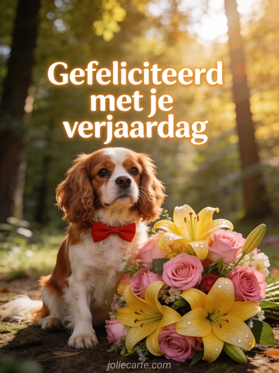Verras een vrouw op haar verjaardag met deze schattige Cavalier King Charles kaart. Ontdek ook een gif verjaardag vrouw grappig, een gefeliciteerd verjaardag vrouw grappig of een gefeliciteerd verjaardag vrouw kat.