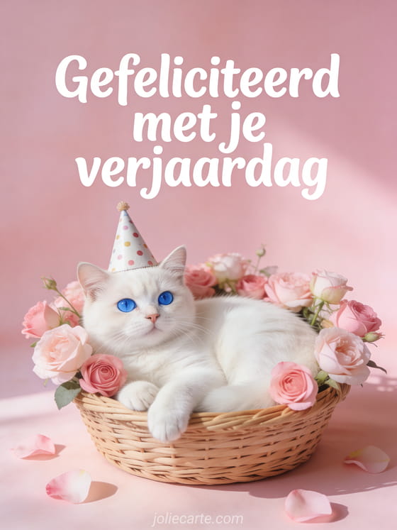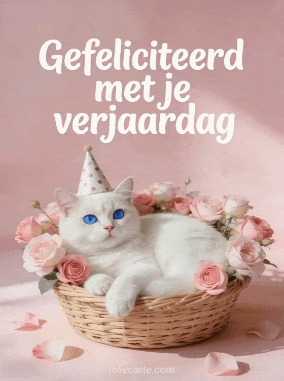 Verras een vrouw op haar verjaardag met deze schattige witte kat. Ontdek ook een gefeliciteerd verjaardag vrouw bloem, een gefeliciteerd verjaardag vrouw humor gif of een verjaardag vrouw wilde bloemen.
