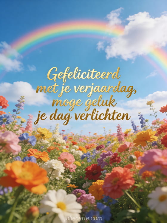 Wens een vrouw geluk op haar verjaardag met deze vrolijke regenboogkaart. Ontdek ook een geanimeerde gifs verjaardag vrouw, een verjaardagskaart vrouw natuur of een verjaardagskaart vrouw vriendin.