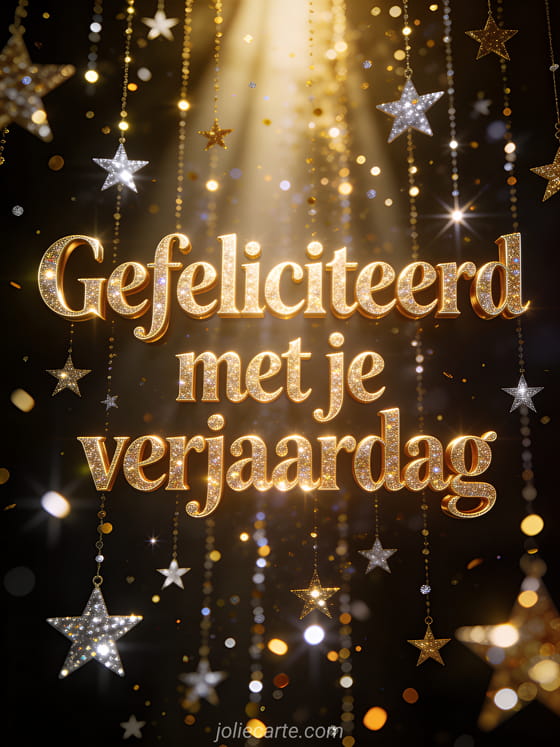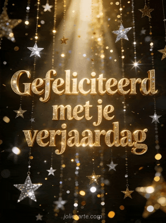 Stuur een magische gratis verjaardagskaart vol gouden en zilveren glitter en fonkelende sterren. Ontdek ook gelukkige verjaardag mimosabloesem boeket, manieren om een gelukkige verjaardag te wensen of gelukkige verjaardag en fijne dag.