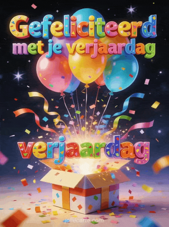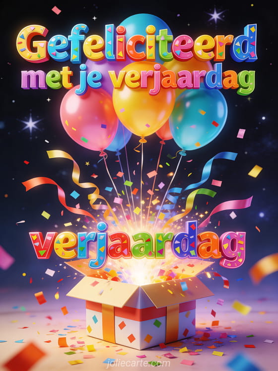 Stuur een verrassende gratis verjaardagskaart met een enorme cadeaudoos die open springt met confetti en ballonnen. Ontdek ook gelukkige verjaardag narcis, vieren gelukkige verjaardag of gelukkige verjaardag met zonnebloemen.