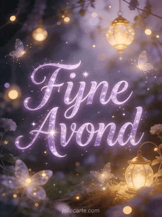 Stuur een betoverende goedenavond animatie gif met feeënlichten in een magische tuin. Ontdek ook een fijne avond kaart met dieren of een fijne avond kaart met een kat.
