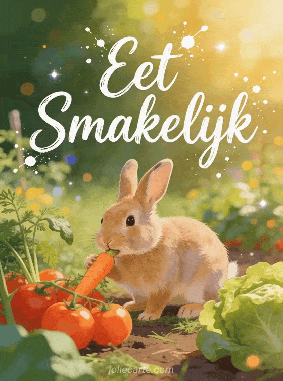 Gif fee eet smakelijk een frisse en schattige wenskaart voor een smakelijke maaltijd