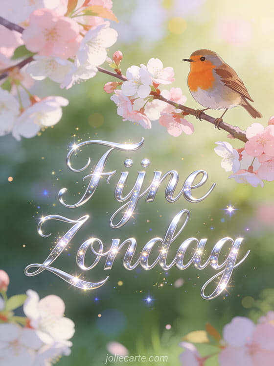 Stuur een charmante fijne zondag gif met een roodborstje gezeten op een bloeiende kersenboomtak in de lente. Ontdek ook een fijne zondag kusjes kaart.