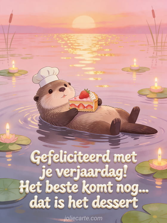 Stuur een vrolijke en grappige verjaardagskaart met een schattige otter als chef-kok die taart vasthoudt. Ontdek ook humor grappig gelukkige verjaardag hond, grappig spreekwoord verjaardag humor of fijne verjaardag humor vrouw.