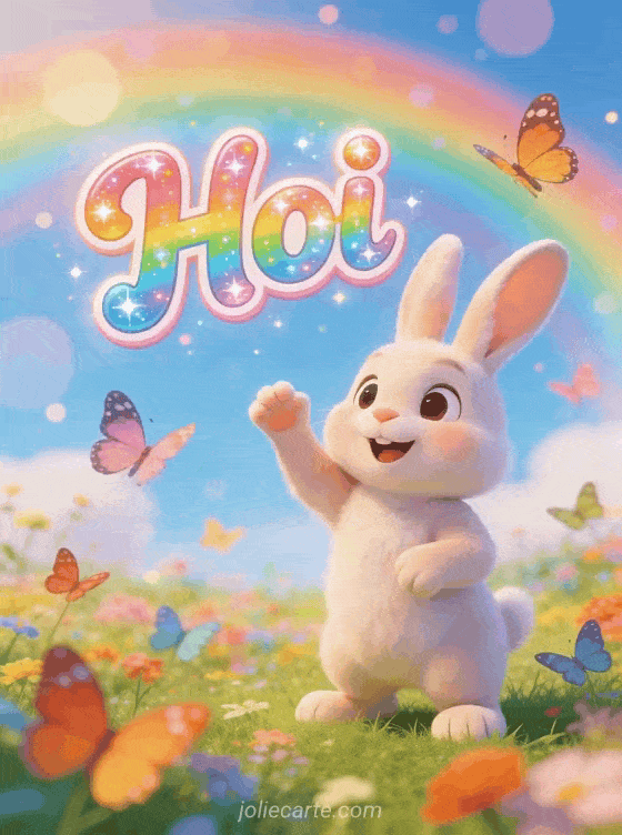 Gif hoi een vrolijke hoi gif met een schattig konijn en vlinders