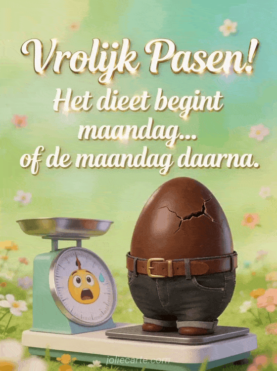 Stuur een humoristische Pasen-gif om te lachen met je dierbaren over chocolade en diëten. Ontdek ook een pasen grap voor volwassenen of een grappig vrolijk pasen humor.