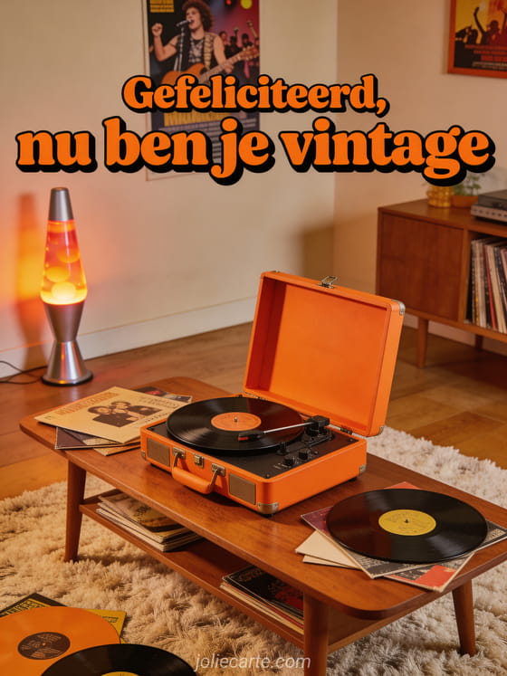 Deel deze retro verjaardagskaart met platenspeler, vinylplaten en humor over ouder worden. Bekijk ook mooie verjaardagskaart man, mooie gratis verjaardagskaart man dromedaris en verjaardagskaart man.