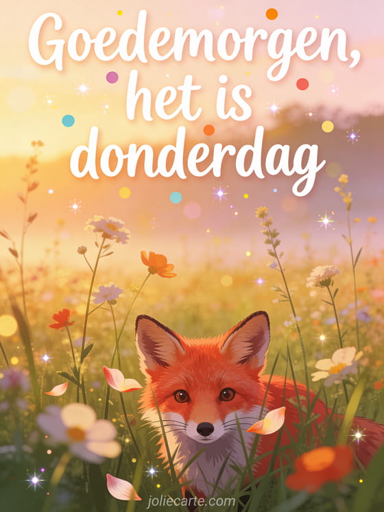 Verrast iemand met deze betoverende vos-op-de-weide donderdaggroet. Ontdek ook een mooie kaart fijne donderdag of een kaart fijne donderdag vrienden.