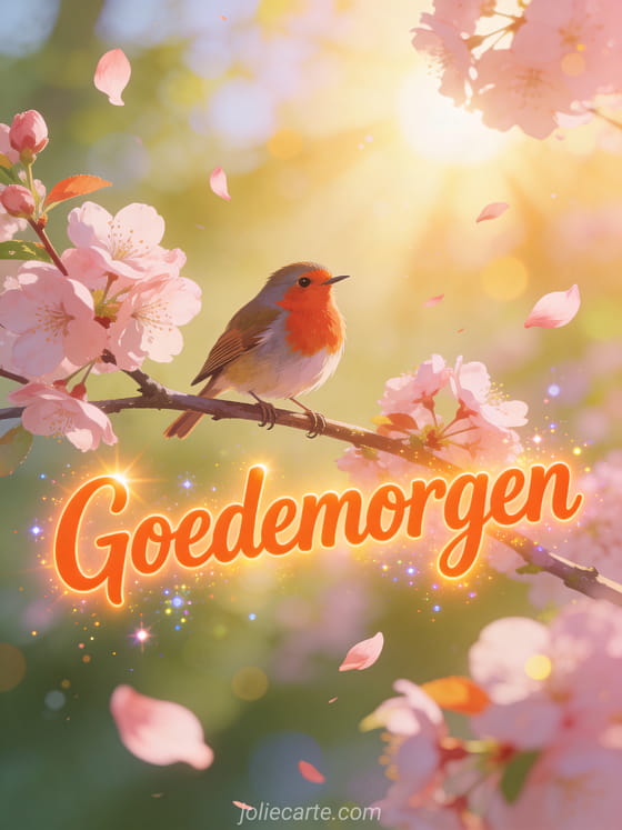 Gifs goedemorgen woensdag een lief roodborstje op kersenbloesem voor een mooie woensdagochtend