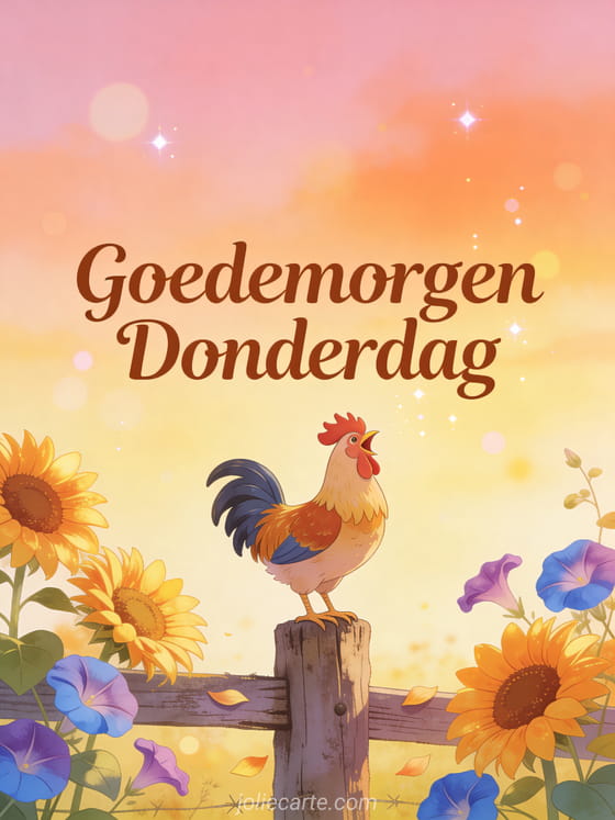 Deel een levendige donderdag wake-up met deze charmante haangroet. Ontdek ook een kaart fijne donderdag of een kaart het is donderdag fijne dag.
