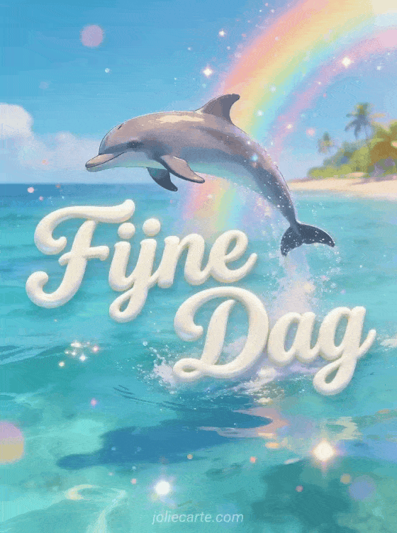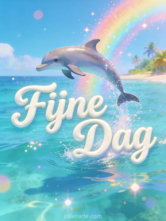 Deel vreugde met deze fijne dag kaart met een speelse dolfijn die uit het glinsterende turquoise oceaanwater springt. Ontdek ook een kaart van zonnig gif fijne dag of een klein gedachte aan jou fijne dag.
