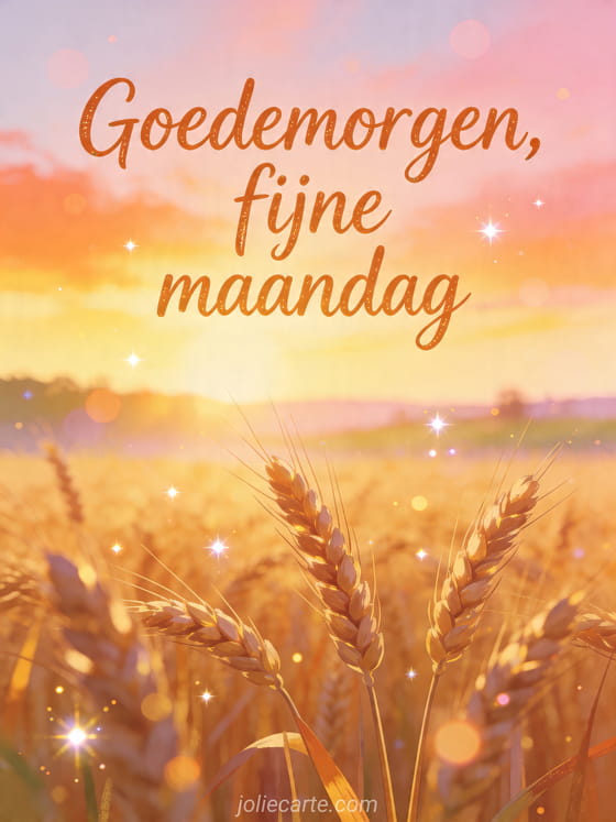 Stuur een Goedemorgen, fijne maandag kaart met een gouden korenveld in het ochtendlicht om de week kalm te beginnen. Bekijk ook fijne maandag afbeelding, fijne maandag grappig en fijne maandag en fijne week.