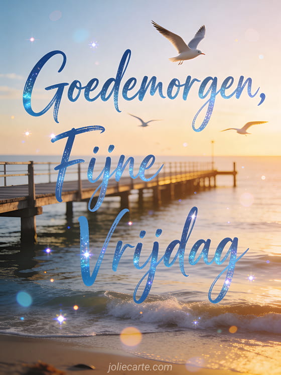 Goedemorgen fijne vrijdag een serene ochtendgroet aan de kust voor een fijne vrijdag