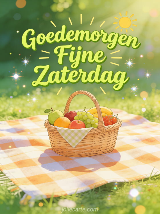 Groet iemand met een vrolijk goedemorgen deze fijne zaterdag en wens een geweldig weekend. Ontdek ook een zaterdag fijne dag kaart of een fijne zaterdag en fijn weekend kaart.