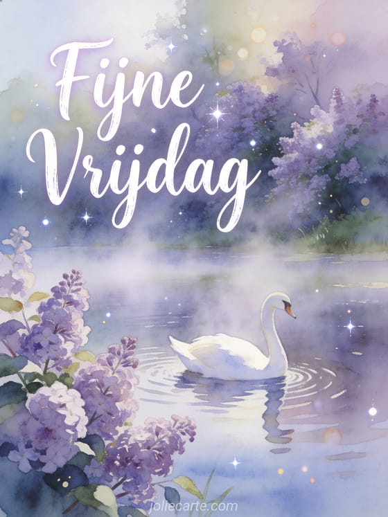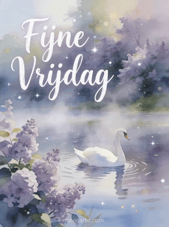 Begin de vrijdag prachtig met deze elegante kaart met een sierlijke witte zwaan die glijdt op een mistig ochtendmeer. Ontdek ook een fijne vrijdag gif of fijne vrijdag grappige gif.