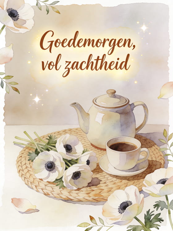 Goedemorgen, vol zachtheid een zachte ochtendgroet met koffie