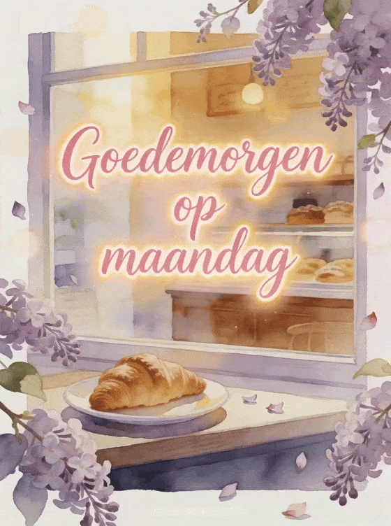 Begin maandag zacht met een aquarelkaart met een bakkerijetalage, een bord met croissant, bloeiende seringtakken en gouden ochtendlicht. Je kunt ook fijne maandag bloemen afbeelding sturen, besneeuwde fijne maandag afbeelding delen of fijne maandag goed begin van de week afbeeldingen kiezen.