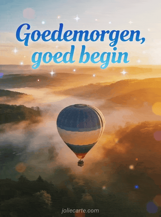 Stuur een Goedemorgen kaart met een luchtballon boven een mistige vallei voor een inspirerende start van de week. Bekijk ook grappig fijne maandag, fijne maandagochtend en fijne maandag fijne week koffie.