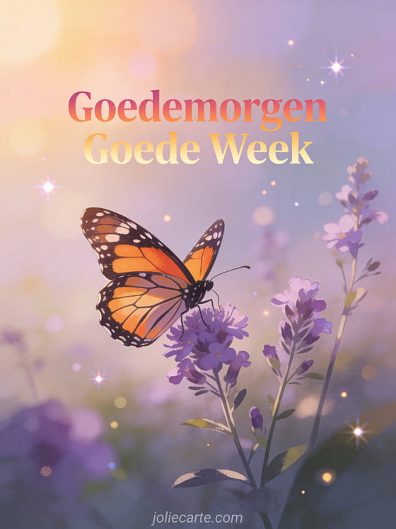 Begin iemands maandag met een prachtige boodschap van hoop met een monarchvlinder op paarse wilde bloemen. Ontdek ook een fijne maandag gratis afbeeldingen of een fijne maandag goede week kusjes kaart.