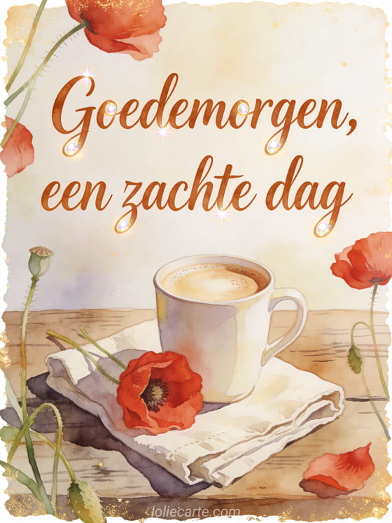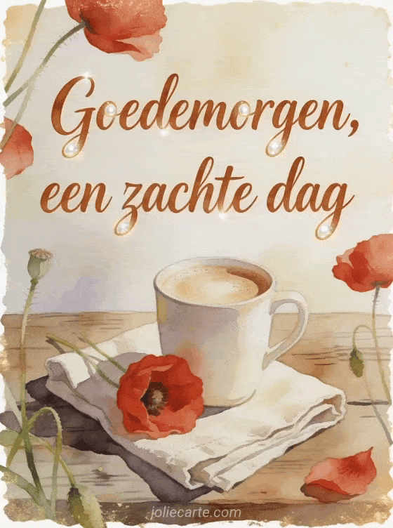 Deel een zachte goedemorgen met een romige cappuccinomok, rode klaprozen, een gevouwen linnen servet en een rustieke houten tafel. Ontdek ook goedemorgen goede koffie gif, goedemorgen mijn lief koffie of goedemorgen koffie koffie.