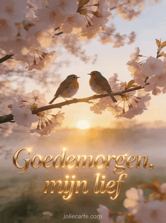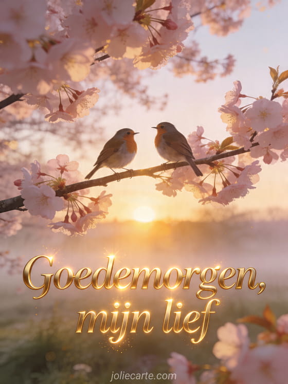 Deel een liefdevolle boodschap op afstand met deze gratis goedemorgenkaart met twee roodborstjes, kersenbloesem en zacht ochtendlicht. Ontdek ook lieve tekst voor een liefde op afstand, geluk citaat liefde op afstand of sms goedemorgen aan je liefde op afstand.