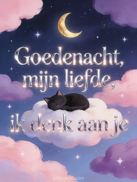 Deel een goedenacht mijn liefde ik denk aan je kaart om tederheid, romantiek en lieve nachtwensen te sturen. Ontdek ook dikke zoenen ik denk aan je een zachte gedachte voor jou, dikke zoenen ik denk aan je of ik hou zo veel van je ik denk aan je.