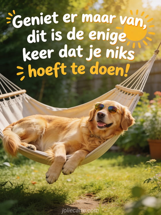 Grappige tekst beterschap humor een grappige beterschapswens met humor en een golden retriever die ontspant in een hangmat