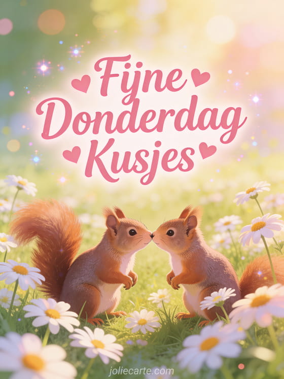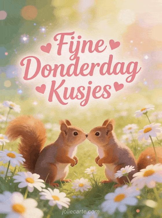 Deel een mooie afbeelding van fijne donderdag kusjes om iemands dag op te fleuren. Ontdek ook een kaart fijne donderdag kusjes of een gif fijne donderdag zonnig.