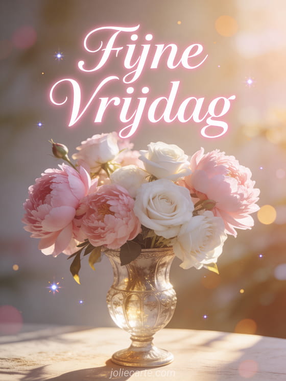 Gratis afbeelding fijne vrijdag een romantische en elegante gratis vrijdag-afbeelding met roze pioenrozen en witte rozen