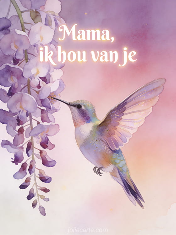 Gratis fijne moederdag kaart een poëtische kaart met een kolibrie om mama te zeggen hoeveel je van haar houdt