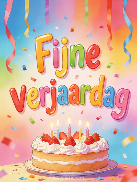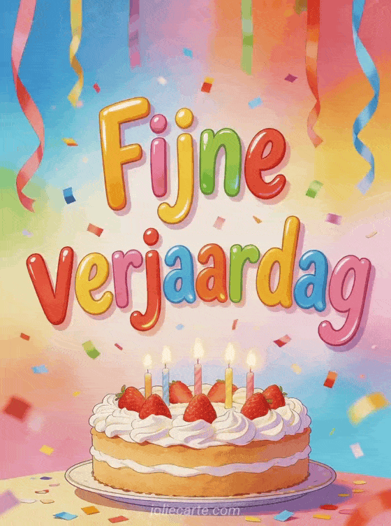 Deel deze mooie gratis fijne verjaardag met feestelijke kleur en vreugde. Ontdek ook fijne verjaardag kat, iemand een fijne verjaardag wensen en fijne verjaardag beste vriendin.