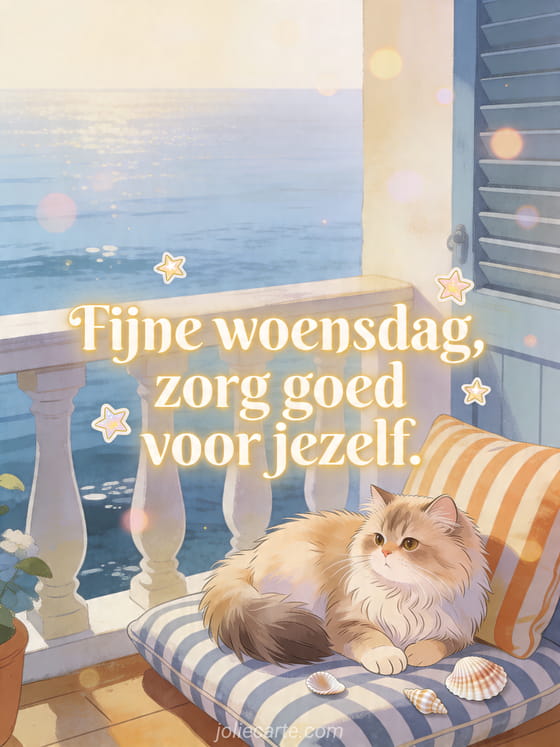 Fijne woensdag, zorg goed voor jezelf. een tedere midweekboodschap met rustige zeesfeer
