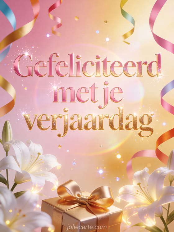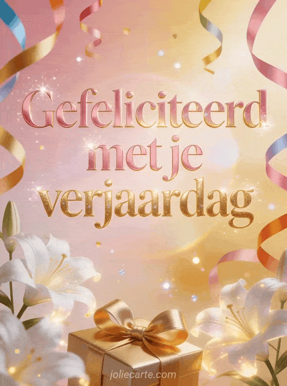 Verras een kind met deze magische geanimeerde verjaardagskaart met witte lelies en fonkelende deeltjes op een roze gouden achtergrond. Ontdek ook een meisje verjaardagskaart kind of een gratis verjaardagskaart kind.