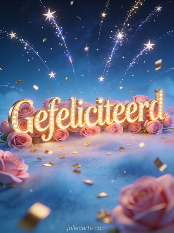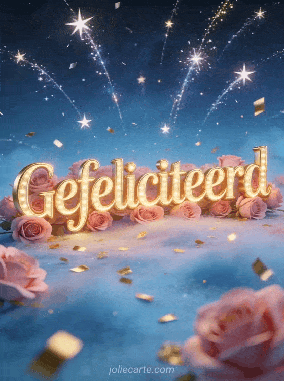 gratis gefeliciteerd vrouw gif Een feestelijke verjaardagsgroet met vallende sterren, confetti en nachtelijke glans.