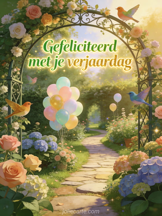 Stuur een betoverende gratis gif verjaardagskaart met een prachtige Engelse tuin vol rozen en hortensias. Ontdek ook gelukkige verjaardag lieve, gelukkige verjaardag kat champagne of gratis verjaardagskaarten gelukkige verjaardag.