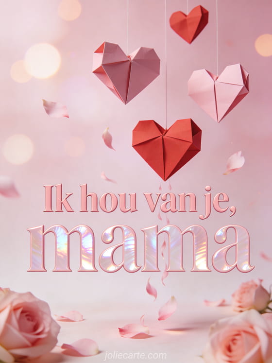 Toon je liefde met deze gratis moederdagkaart met origami harten en rozenblaadjes. Ontdek ook fijne moederdag mijn dochter of gratis virtuele moederdagkaart.