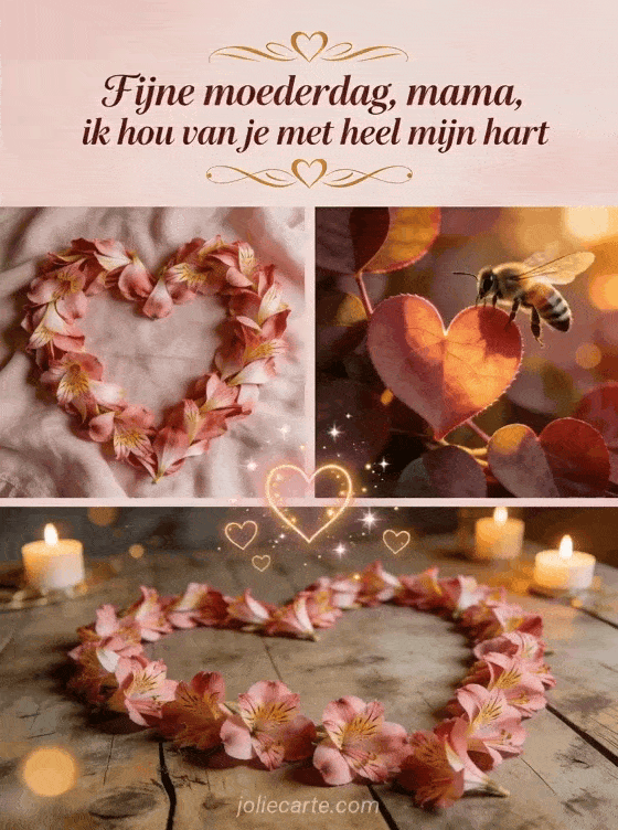 Deel deze romantische moederdagkaart en laat je mama voelen hoeveel je van haar houdt. Bekijk ook kaartsjabloon moederdag, moederdag wensen en fijne moederdag fijne moederdag mama gif.