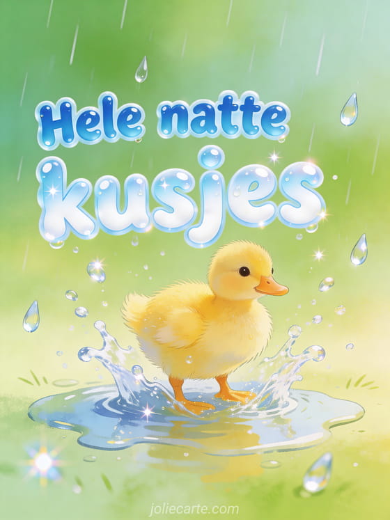 Stuur vrolijke natte kusjes met deze charmante kaart met een schattig geel eendje dat in een regenplas plonst. Ontdek ook tekening meisje kusjes of zeehond kusjes.