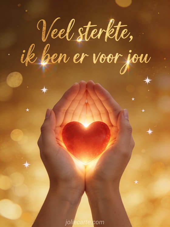 Stuur een warme en emotionele kaart met twee handen die een glanzend rood hart vasthouden om iemand met kanker te laten weten dat je er voor hem of haar bent. Bekijk ook een veel sterkte ziek, succes wensen operatie of sterkte bij operatie.