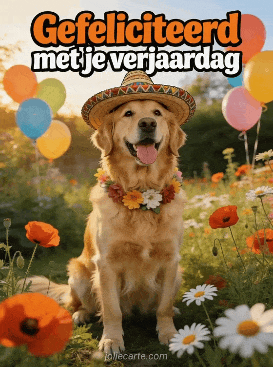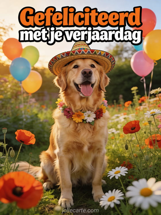 Verras iemand met deze grappige verjaardagskaart met een golden retriever die een sombrero draagt. Ontdek ook een grappig spreekwoord verjaardag humor, fijne verjaardag humor vrouw of afbeelding verjaardag humor.