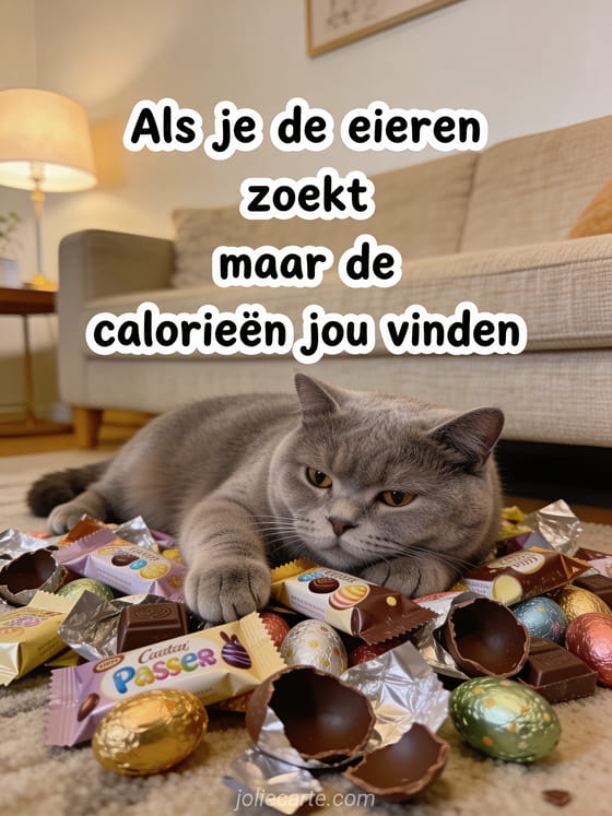 Humor grappig humor vrolijk pasen een grappige paaskaart over eieren zoeken terwijl de calorieën jou weten te vinden