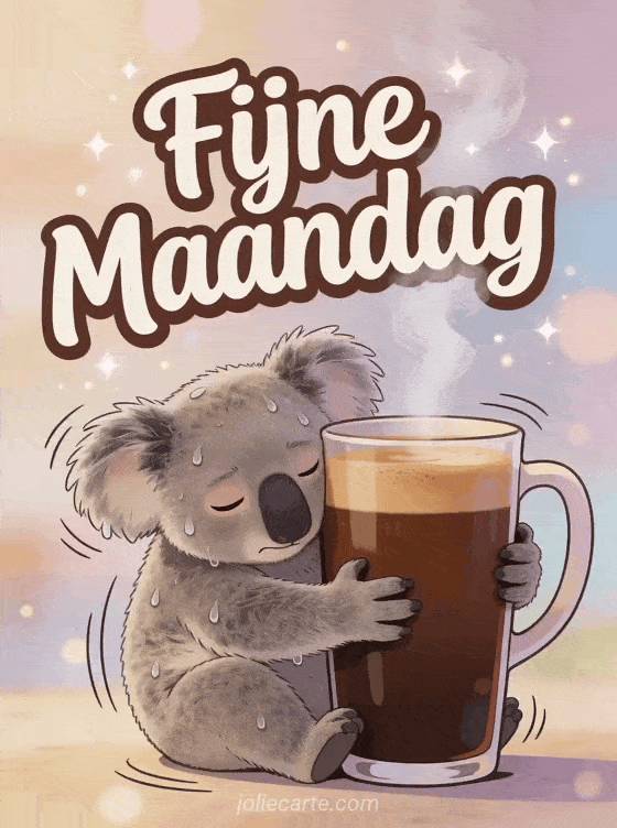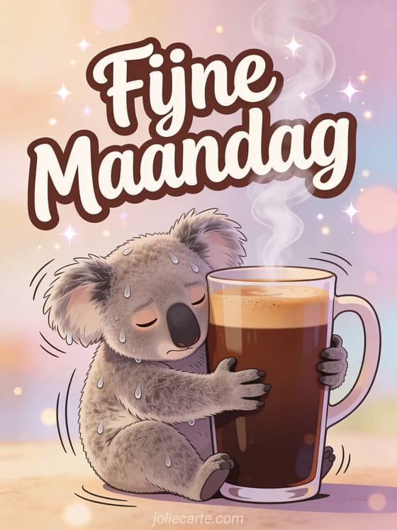 Begin de week met deze grappige maandagkaart met een uitgeputte koala die zijn koffiebeker omhelst. Ontdek ook een fijne maandag grappige gif of een gratis fijne maandag kaart.