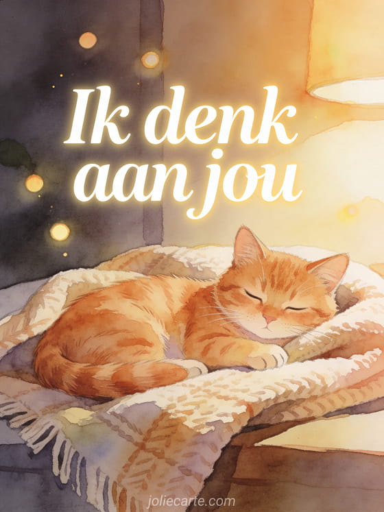 Stuur een warme aquarelkaart met een schattige roodharige kat liggend op een gezellig plaid met halfgesloten ogen om iemand te laten weten dat je aan hem denkt. Bekijk ook een vanavond denk ik aan jou, clipart ik denk aan jou of ik denk heel sterk aan jou vriendschap.