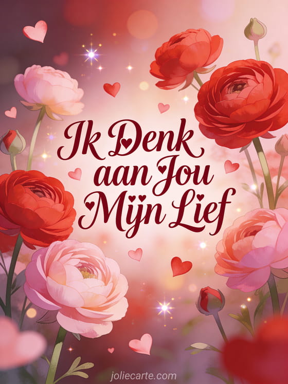 Stuur je lief een romantische ik denk aan jou boodschap met deze gratis wenskaart. Ontdek ook een ik denk sterk aan jou mijn liefste kaart of een ik denk aan jou en ik droom van jou kaart.