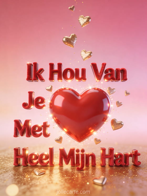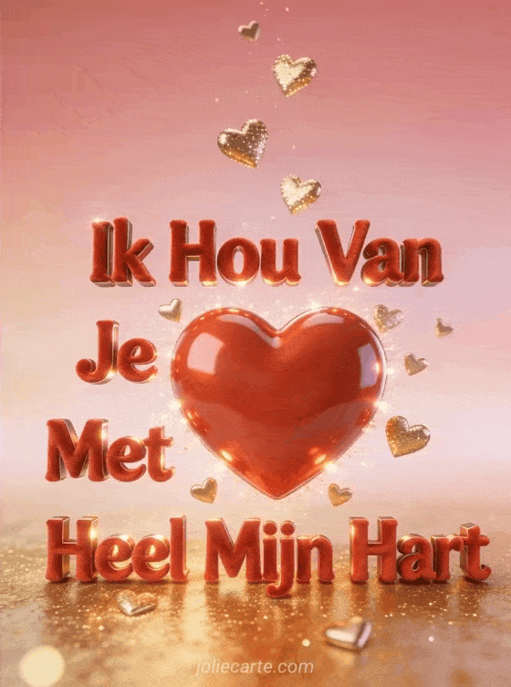Zeg 'ik hou van je met heel mijn hart' met deze feestelijke hartjeskaart. Bekijk ook verliefd koppel ik hou van je koppel gif of afbeelding ik hou van je.