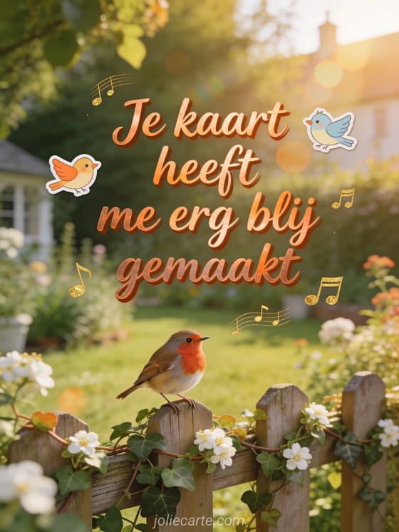 Je kaart heeft me erg blij gemaakt een vrolijke en tedere bedankkaart om blij te zijn met een ontvangen kaart
