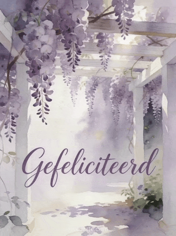 Deel een poëtische verjaardagskaart met hangende trossen blauwe regen en zacht licht van een geheime tuin. Bekijk ook bloem gefeliciteerd vrouw, fijne verjaardag vrouw gif gratis en tekst verjaardag vrouw humor.