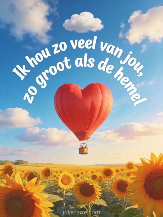 Laat je liefde de hemel in stijgen met deze vrolijke luchtballonkaart. Bekijk ook kusjes mijn liefde ik hou van je of geanimeerde afbeelding ik hou van je.