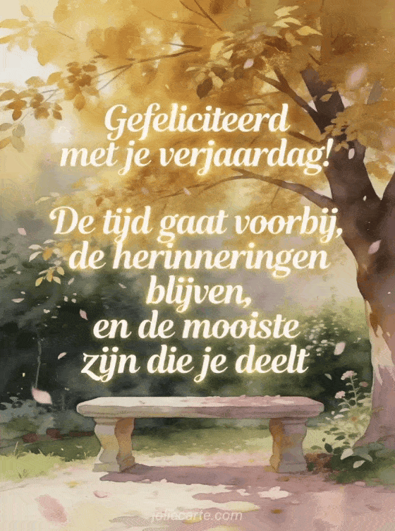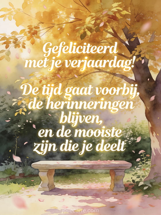Stuur een poëtisch kort gedicht voor een verjaardag met een romantisch herfstpark en een bank onder een goudkleurige boom. Ontdek ook klein berichtje om een fijne verjaardag te wensen, een klein berichtje om een gelukkige verjaardag te wensen of korte verjaardagstekst.